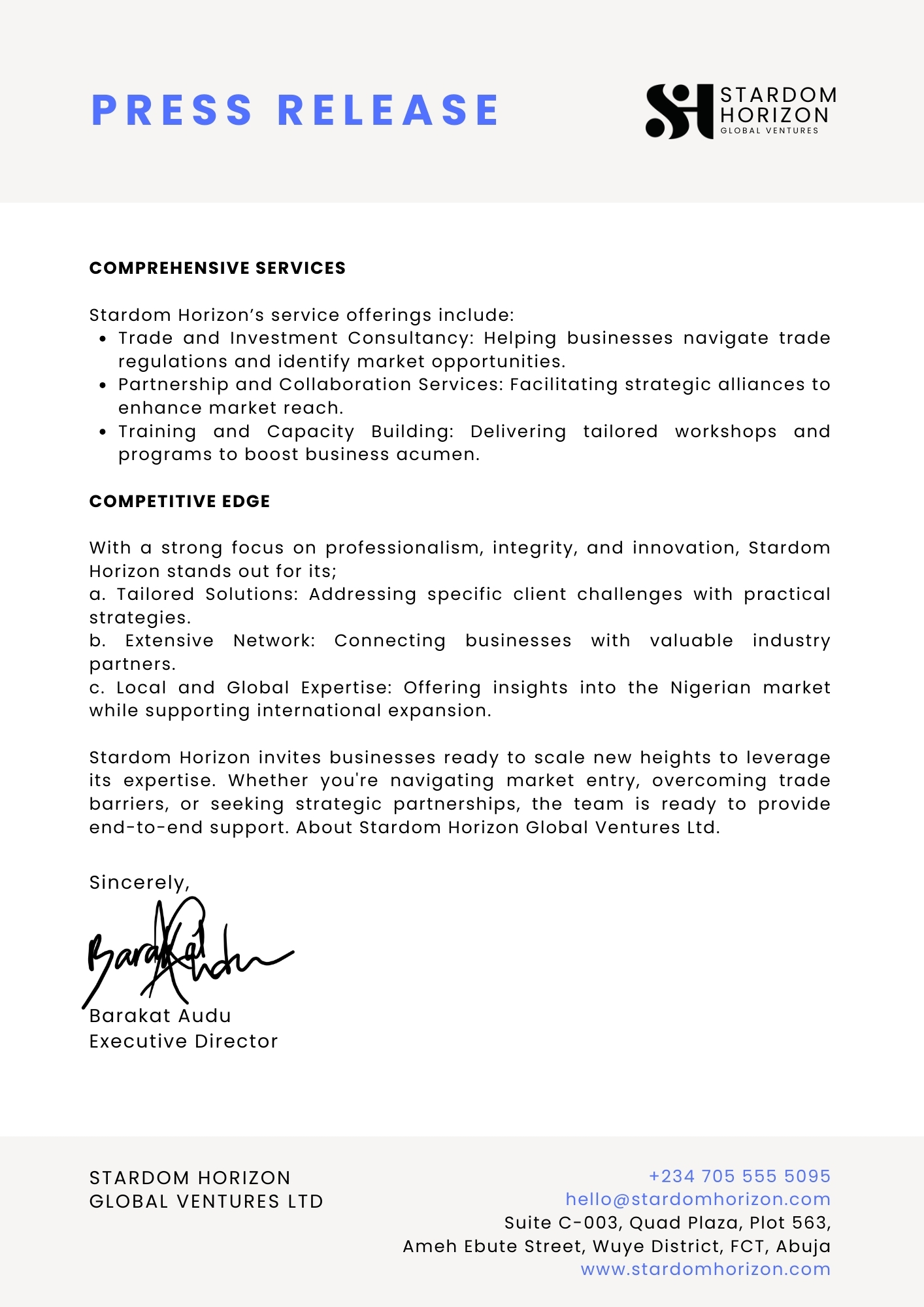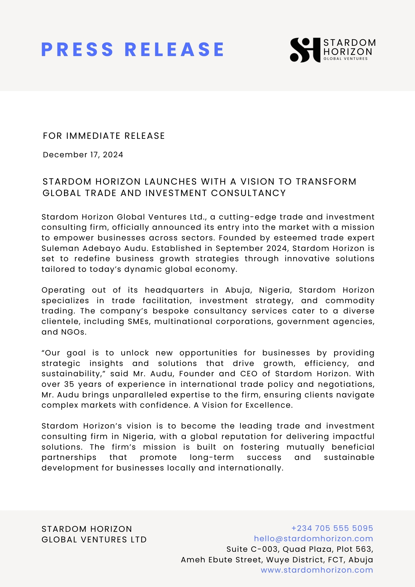 PRESS RELEASE – Stardom Horizon Launches